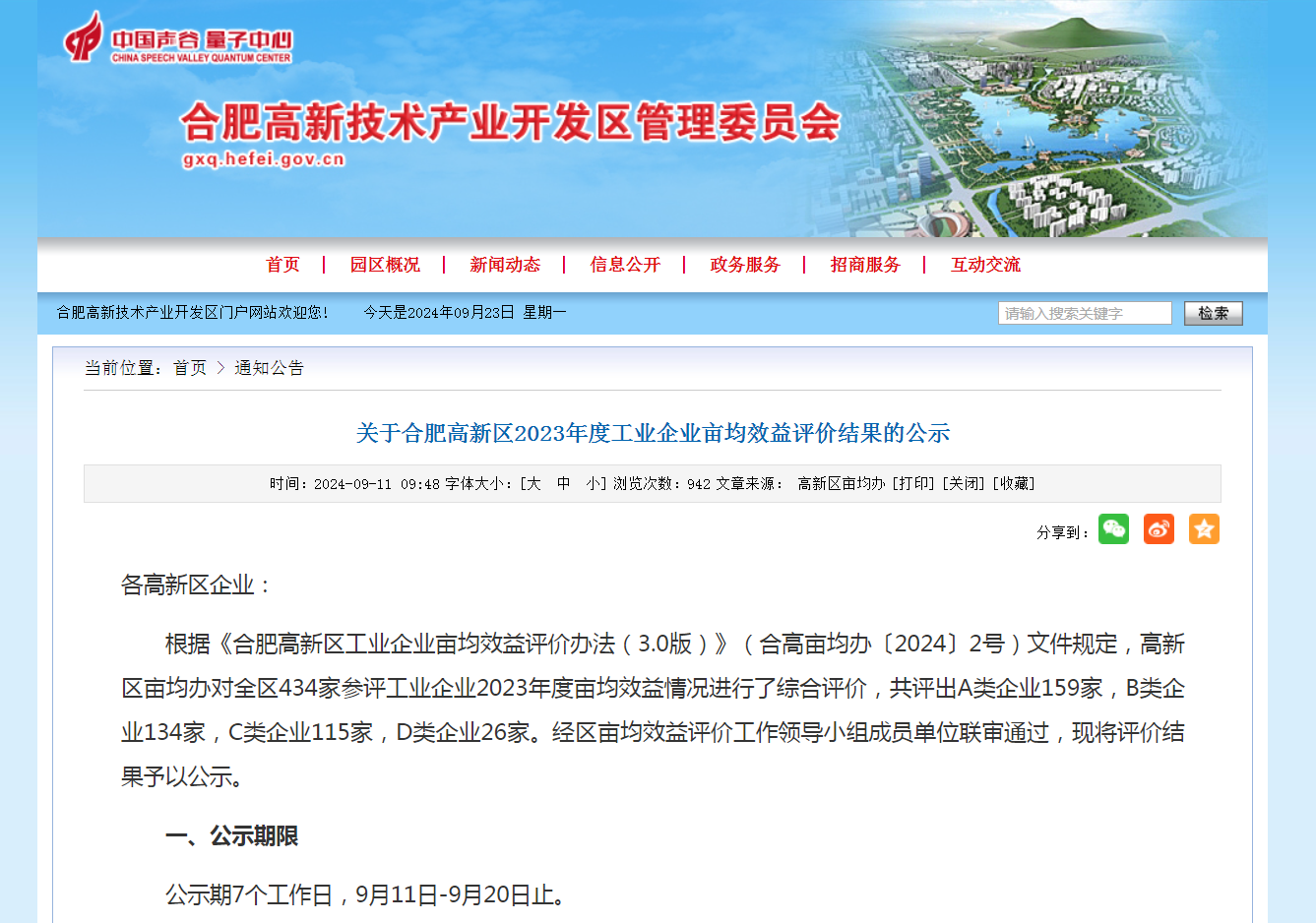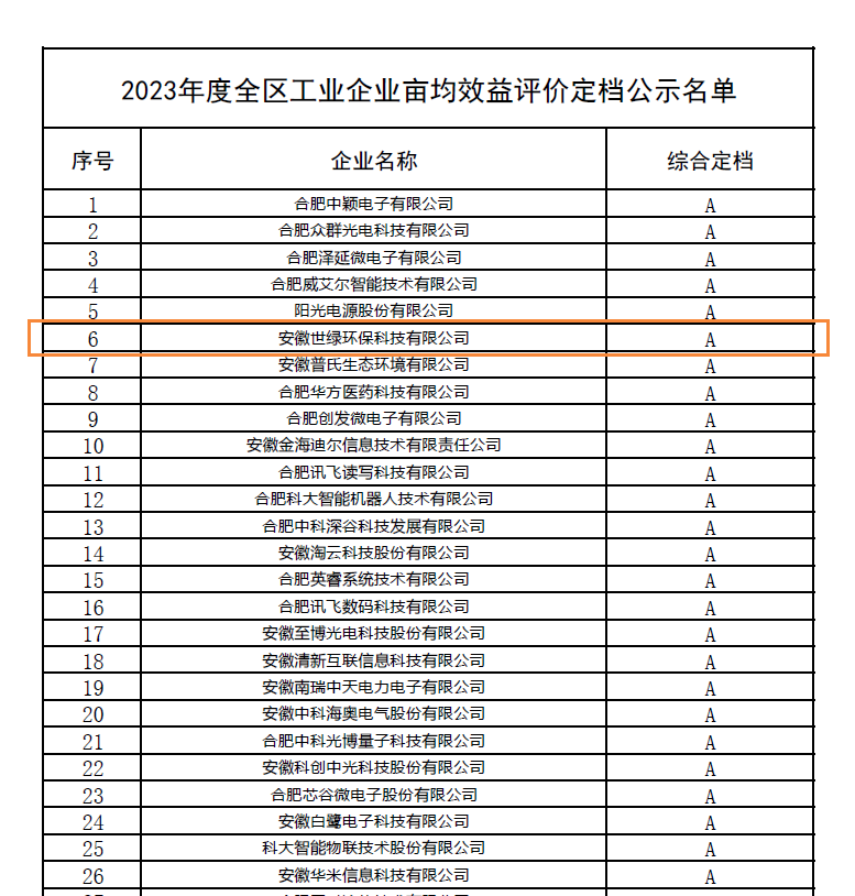 根據(jù)《合肥高新區(qū)工業(yè)企業(yè)畝均效益評價(jià)辦法(3.0版)》(合高畝均辦〔2024〕2號)文件規(guī)定,高新區(qū)畝均辦對全區(qū)434家參評工業(yè)企業(yè)2023年度畝均效益情況進(jìn)行了綜合評價(jià),共評出A類企業(yè)159家,B類企業(yè)134家,C類企業(yè)115家,D類企業(yè)26家。經(jīng)區(qū)畝均效益評價(jià)工作領(lǐng)導(dǎo)小組成員單位聯(lián)審?fù)ㄟ^,近期對評價(jià)結(jié)果予以了公示。