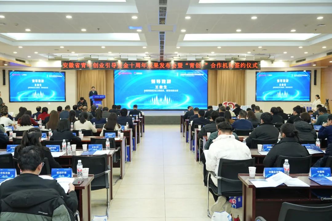 12月26日下午,安徽省青年創業引導資金十周年成果發布會暨“青創+”合作機構簽約儀式在合肥高新區成功舉辦。安徽省人社廳就業促進和失業保險處副處長李鏨,安徽省財政廳社會保障處四級調研員吳昌好,合肥市人社局就業促進處副處長汪云亮,合肥市財政局社會保障處張云,高新區黨工委委員、管委會副主任王俊生、許永出席活動,青創資金決策委員會成員單位,高新區相關部門,金融機構及百余青創企業參加活動。