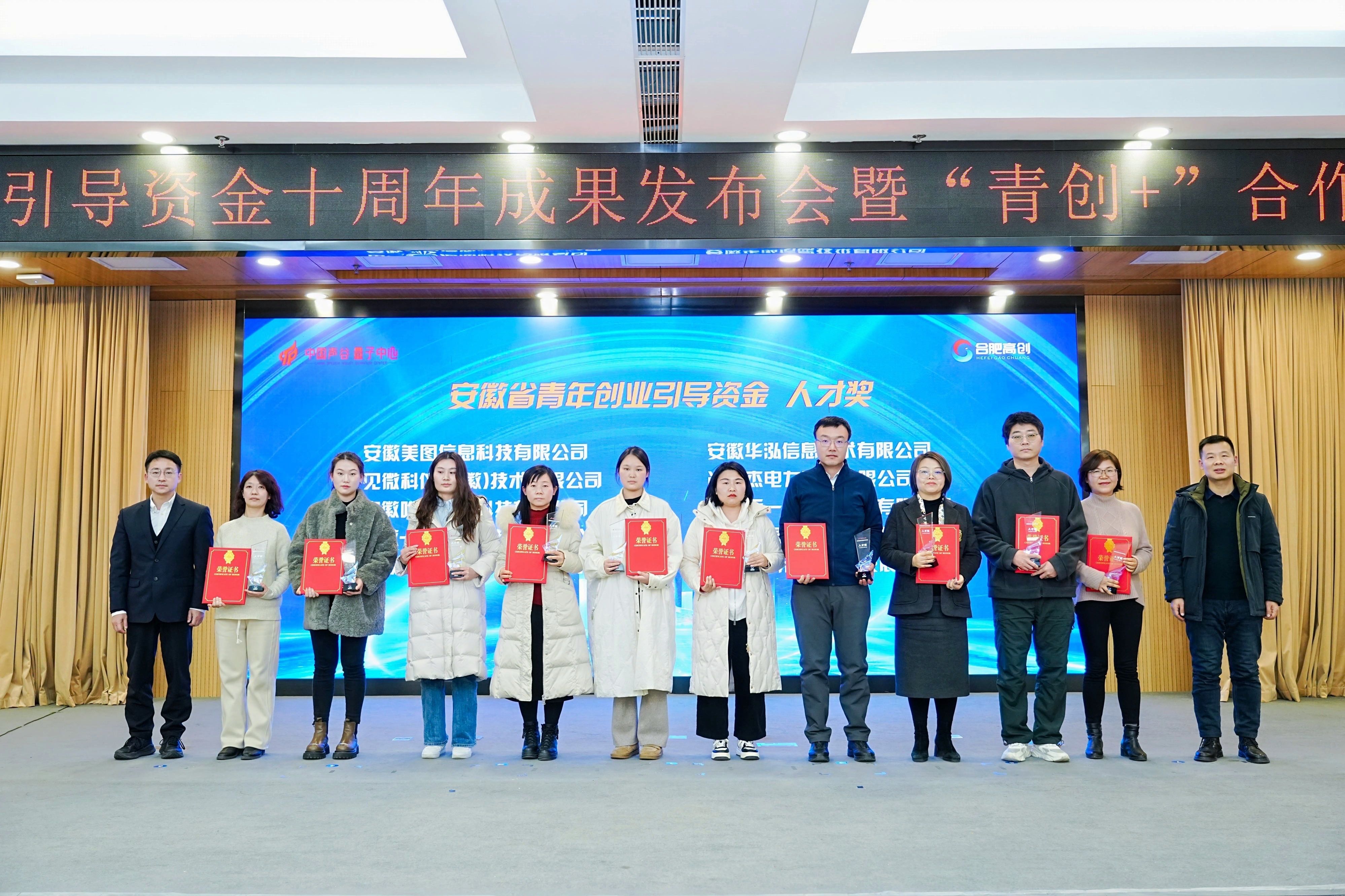 活動正式發布安徽省青年創業引導資金十周年發展報告,并為青創資金優秀企業及合作機構進行頒獎。會上,啟動“青創+”合作機構簽約儀式,與建設銀行、擔保公司等6家機構正式簽約,為高新區創業者提供全生命周期、全過程創新創業金融服務。